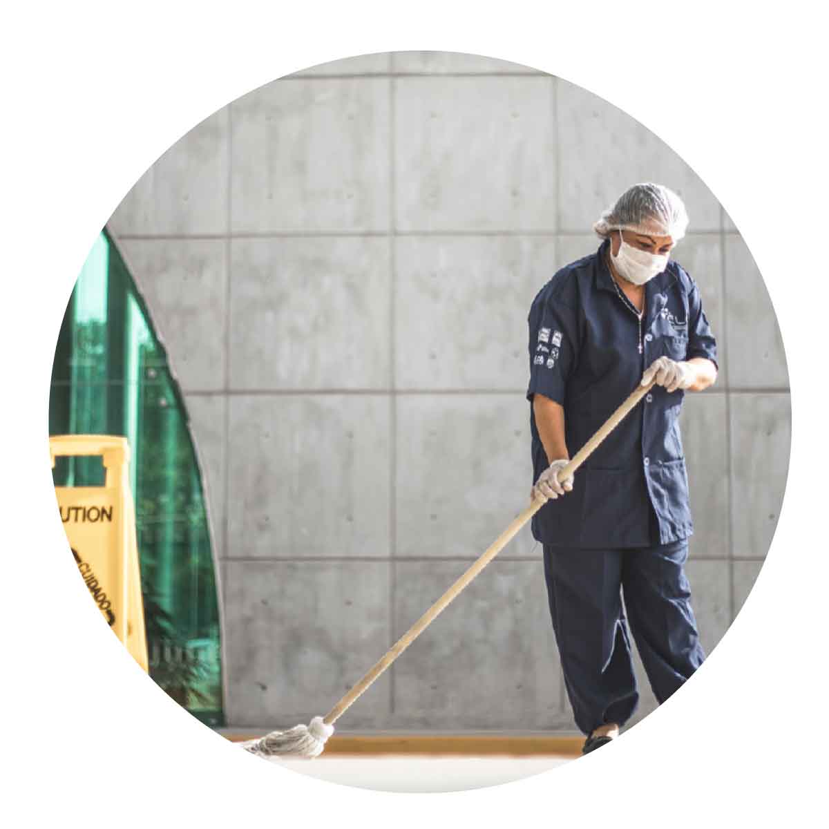 Para intervenir en cualquier eventualidad en lo que limpieza se refiera, desarrollamos un sistema de brigadas de servicios especiales, incluyendo: limpieza de cristales, pisos, alfombras y baños.